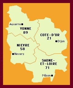 | Cliquer sur le département de la carte BOURGOGNE | ||||