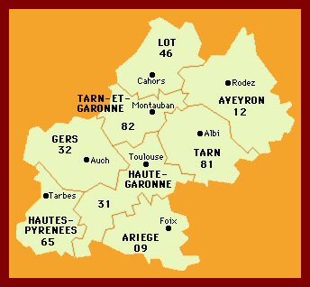 | Cliquer sur le département de la carte MIDI-PYRÉNÉES | ||||||||